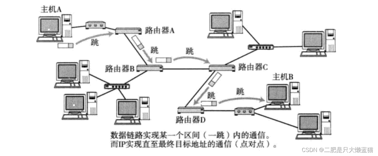 路由,即在复杂的网络结构中, 找出一条通往终点的路线。路由的过程, 就是这样一跳一跳(Hop by Hop) "问路" 的过程。