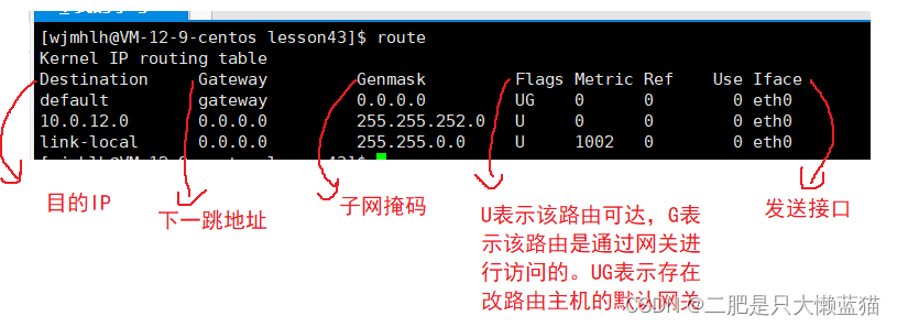 使用 route命令查看路由表: