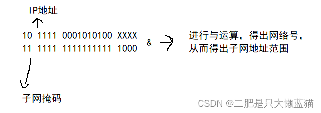 引入一个额外的子网掩码(subnet mask)来区分网络号和主机号。子网掩码也是一个32位的正整数。 通常用一串 "0" 来结尾。将IP地址和子网掩码进行 "按位与" 操作, 得到的结果就是网络号。网络号和主机号的划分与这个IP地址是A类、B类还是C类无关。
