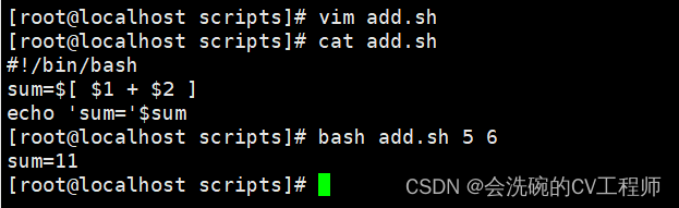 2、创建 add.sh ,在执行的时候,通过传递参数的形式实现加法效果