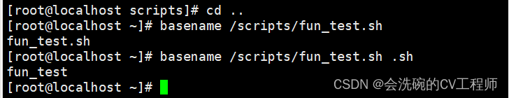 现在我们回忆一下之前讲解的特殊变量 n ,其中 0 是获取当前名字,但是带有路径,我们只希望获取名字,所以可以通过 basename 去掉路径,甚至去掉后缀