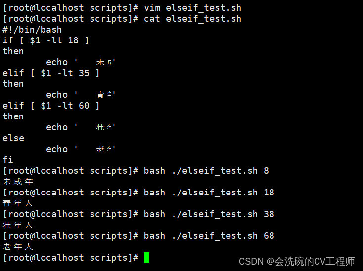 #!/bin/bash if [ 1 -lt 18 ] then echo '未成年' elif [ 1 -lt 35 ] then echo '青年人' elif [