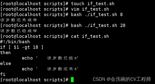 #!/bin/bash if [ $1 -gt 18 ] then echo '该岁数已经成年' else echo '该岁数还未成年' fi