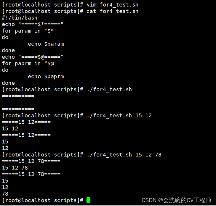 * 和 @ * 和 @ 非常相似,都代表命令行所有的参数,但是 * 把参数看成是一个整体,例如 123 456 。而 @ 把每个参数区分对待,例如换行显示