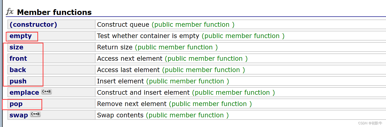 成员函数来访问其元素。元素从队尾入队列,从队头出队列。