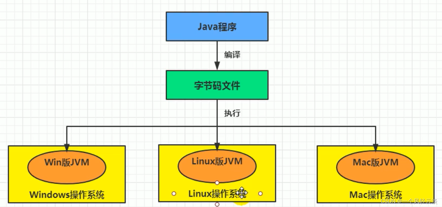 JVM设计者们的初衷仅仅只是单纯地为了满足Java程序实现跨平台特性,因此避免采用静态编译的方式直接生成本地机器指令,从而诞生了实现解释器在运行时采用逐行解释字节码执行程序的想法。