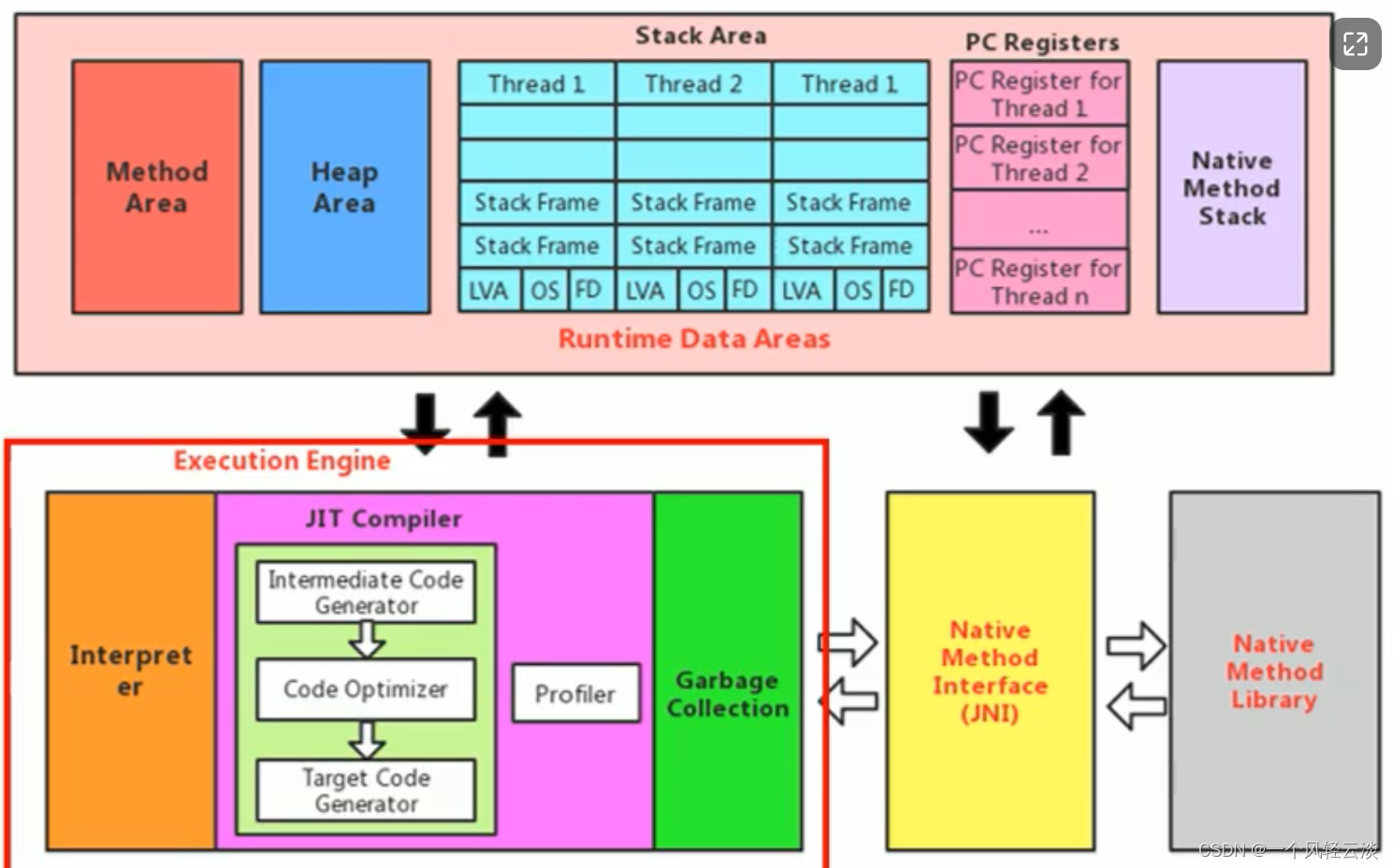 那么,如果想要让一个Java程序运行起来,执行引擎(Execution Engine)的任务就是将字节码指令解释/编译为对应平台上的本地机器指令.才可以。简单来说,JVM中的执行引擎充当了将高级语言翻译为机器语言的译者。