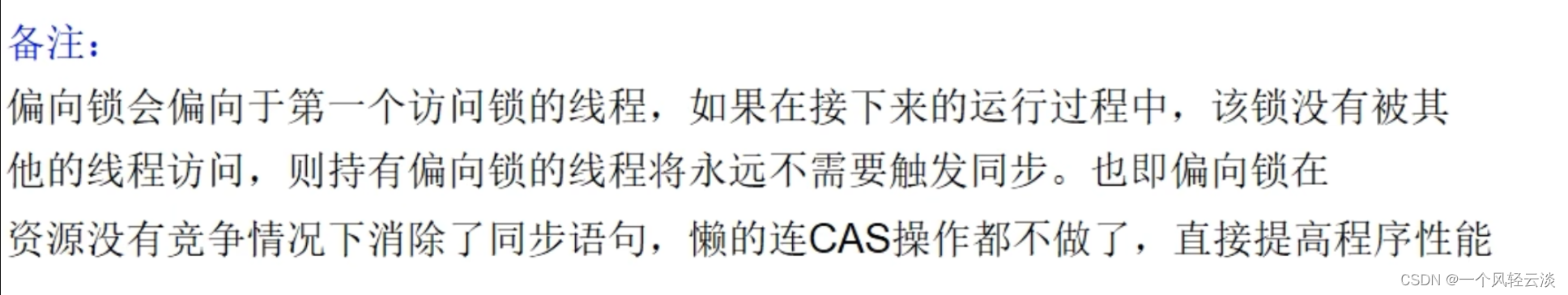 当一段同步代码一直被同一个线程多次访问,由于只有一个线程那么该线程在后续访问时便会自动获得锁,在多线程的情况下,锁不仅不存在多线程竞争,还存在锁由同一个线程多次获取,偏向锁解释在这种情况下出现的,她的出现是未来解决只有在一个线程执行同步时提高性能