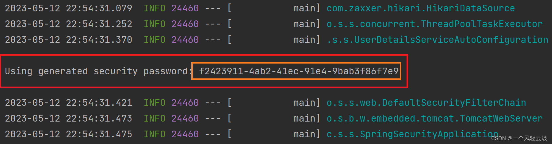 密码在项目启动的时候在控制台会打印,注意每次启动的时候密码都回发生变化!