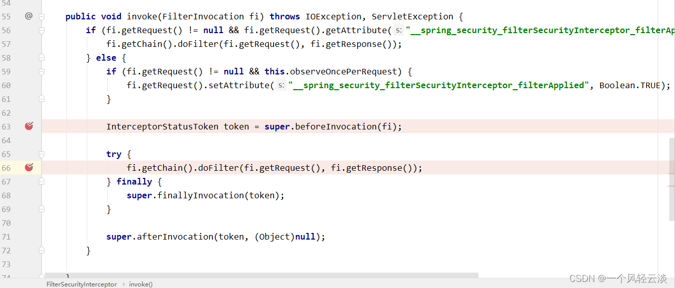 重点看三个过滤器: FilterSecurityInterceptor:是一个方法级的权限过滤器, 基本位于过滤链的最底部。