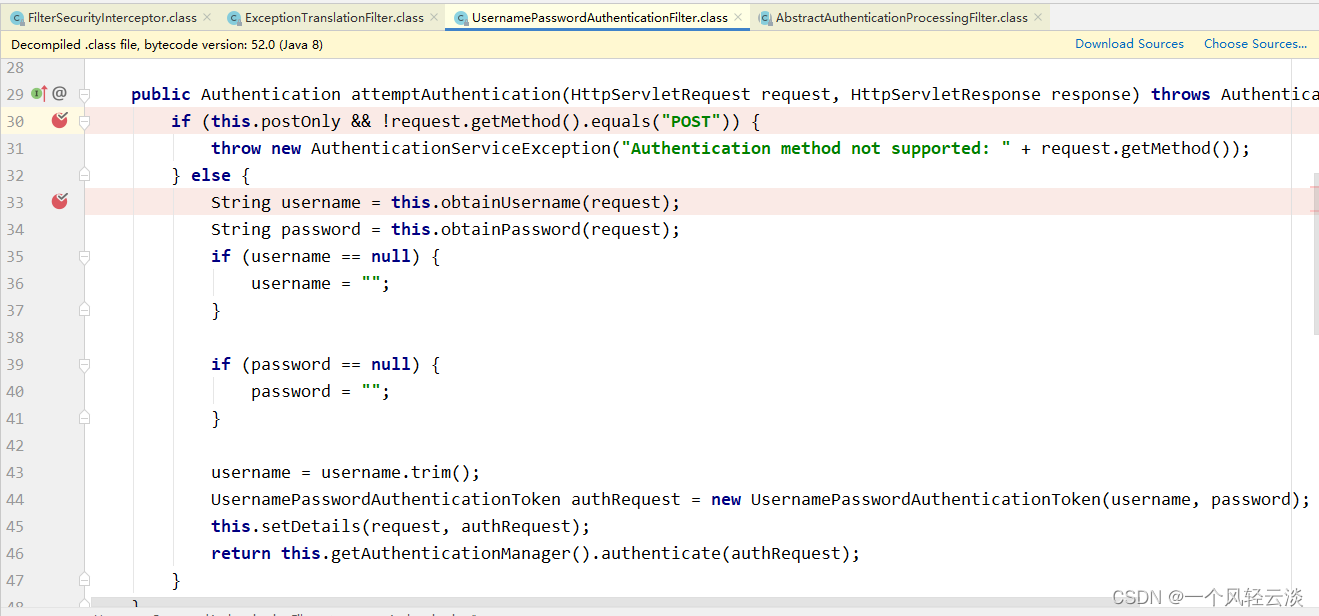 UsernamePasswordAuthenticationFilter :对/login 的 POST 请求做拦截,校验表单中用户 名,密码。