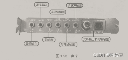 声卡是组成多媒体计算机必不可少的一个硬件设备,是多媒体技术中最基本的组成部分,其作用是当发出播放命令后,实现声波/数字信号的相互转换,如图1.23所示,声卡主要有两种,内置独立声卡和内置集成在主板上的软声卡。