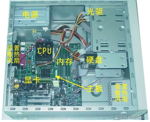 机箱是计算机主机的主体框架和外衣,用来固定各种其他硬件,阻挡灰尘,防止外力的意外破 坏等,机箱与电源如图。