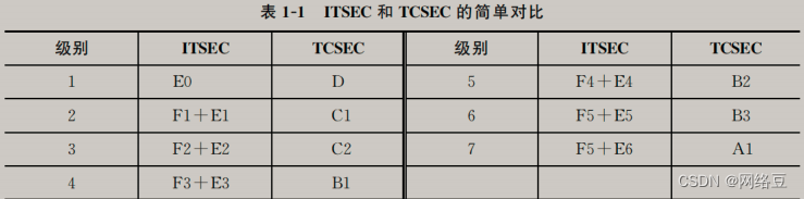 1991年,西欧四国制定了信息技术安全评价规则(ITSEC),ITSEC首次提出了信息安全的保密性、完整性和可用性概念,把可信计算基的概念提高到可信信息技术的高度上来认识。它定义了从E0~E6这7个安全等级和10种安全功能。