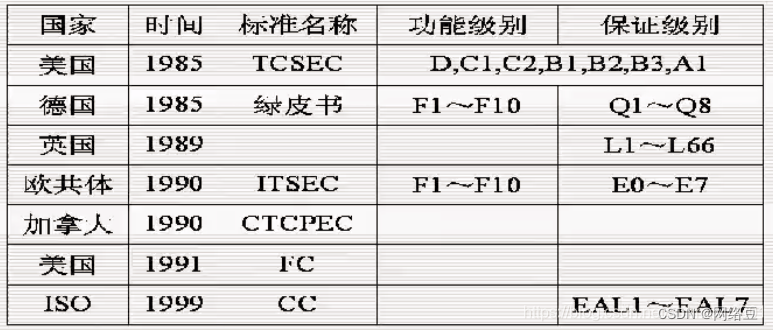 这些标准基本上都采用了TCSEC的安全框架和模式,将信息系统的安全性分成不同等级,并规定了不同等级应实现的安全功能或安全措施。