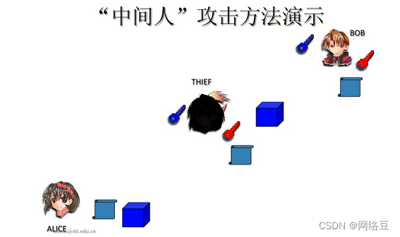 顾名思义,中间人攻击发生在用户与通信对象之间,即通信过程以及通信数据遭到第三方的监视、截取和控制,例如攻击者可以对数据交换进行重定向等。如果通信中使用网络底层协议,通信两端的主机是很难区分出不同对象的,因此也不大容易察觉这类攻击。中间人攻击有点类似于身份欺骗。