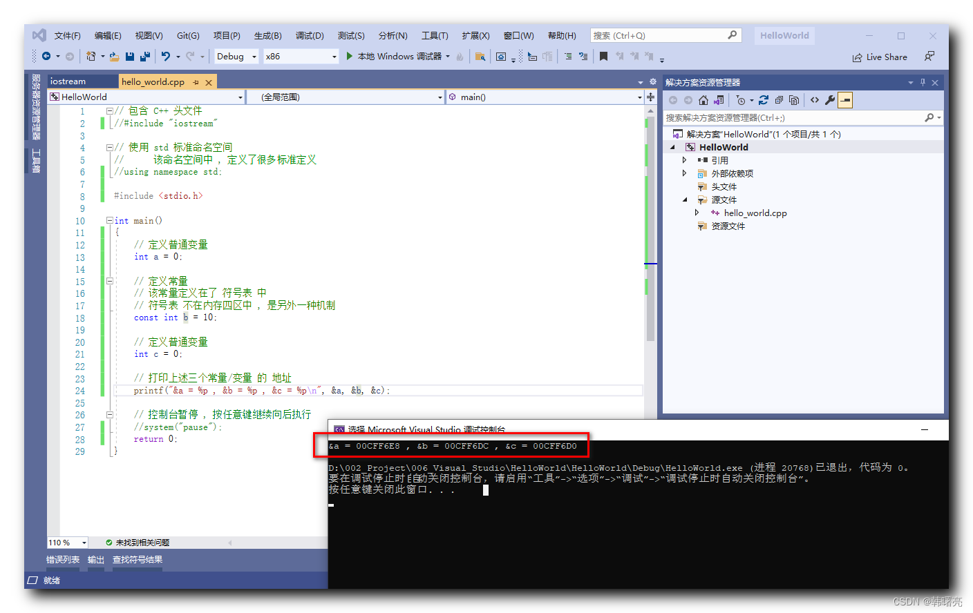 D:\002_Project\006_Visual_Studio\HelloWorld\HelloWorld\Debug\HelloWorld.exe (进程 21584)已退出,代码为 0。