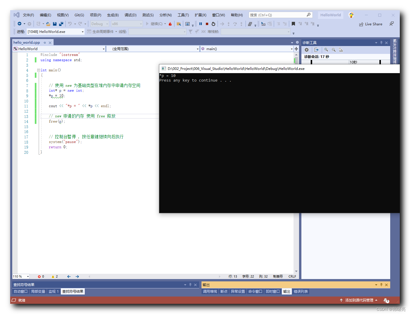// 使用 new 为基础类型在堆内存中申请内存空间