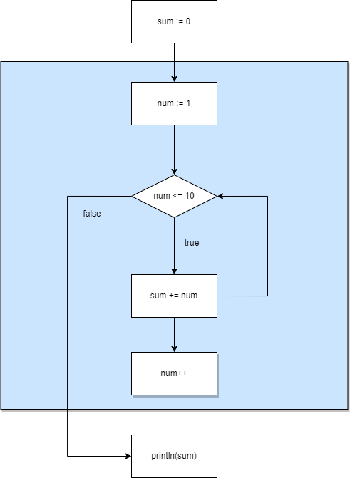for 循环分为四个部分,第一部分 num := 1 为循环前置语句,在这一部分,我们一般都会定义一些变量,这些变量被使用于第二部分和第三部分里。num <= 10。只要条件成立,就会去执行第三部分.num 变量的值。num 进行自增。for 循环执行顺序是这样的: