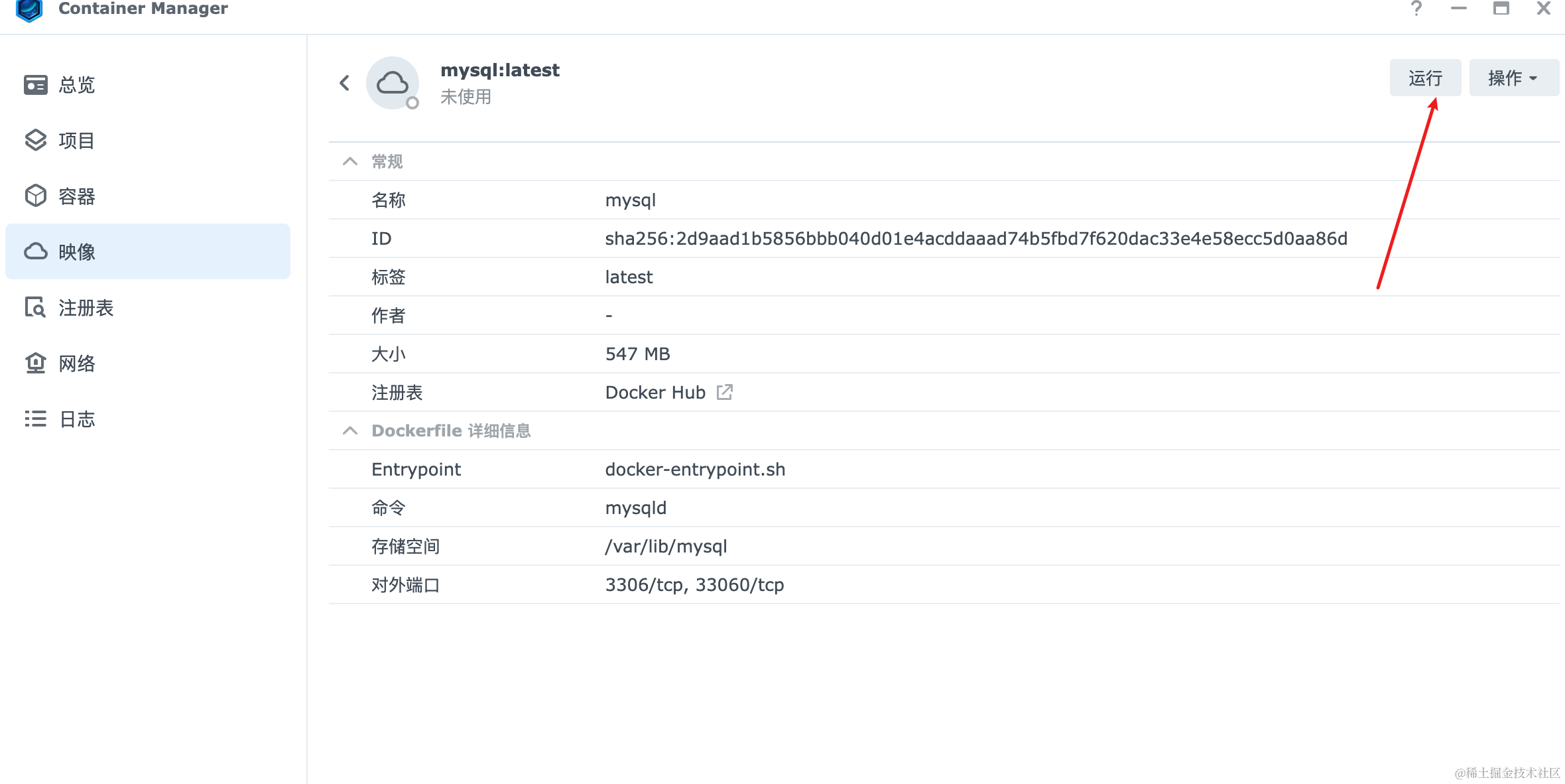笔者群晖版本是7.2.2,docker容器的名称已改成Container Manager,实际是docker本身是一致的。