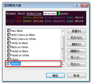 name0=ubuntu把上面的代码另存为 ubuntu.xcs,然后打开 XShell 的配色方案: