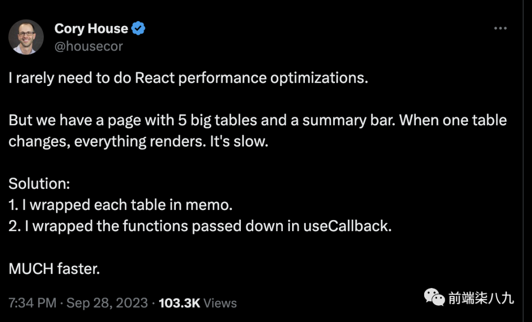 当然还有那些特殊情况,它们需要处理一下耗时任务,从而使的渲染变得「步履蹒跚」。同时,由于某些原因,我们都有一些组件(前任留下的💩⛰️,或者核心业务),我们无法轻易改变它们,与此同时它们的渲染速度还不尽人意。而此时,小可爱产品,又提出了优化需求。而我们就不得不赶鸭子上架。