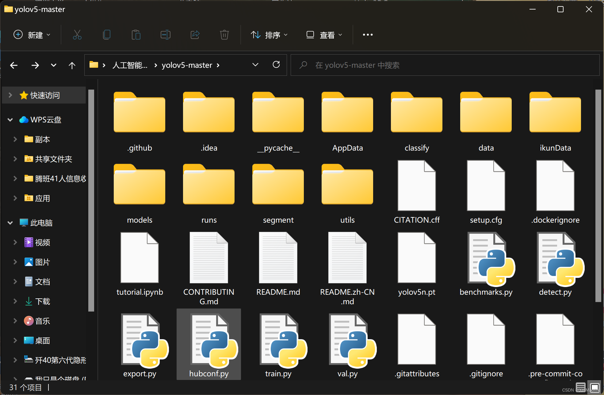 再下载一个yolov5的预训练模型,我这里选择yolov5n.pt,下下来也放到解压文件夹中