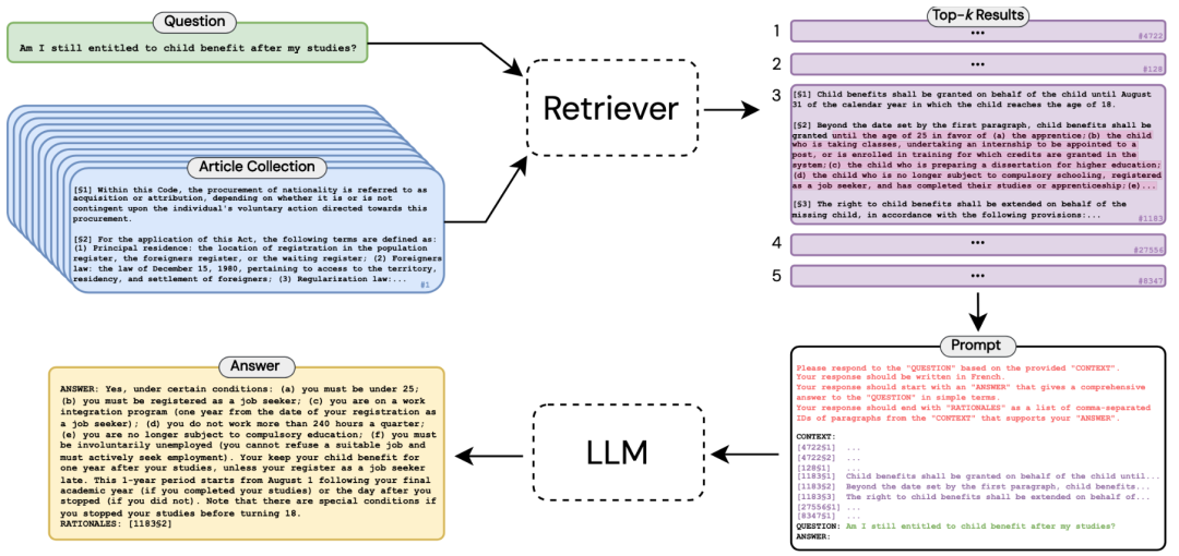 为此,本文作者提出了一种端到端的方法,「旨在利用“先检索后阅读”的管道生成任何成文法问题的长格式答案」。为了支持这种方法,作者发布了长格式法律问答 (LLeQA) 数据集,其中包含 1,868 个由专家注释的法语法律问题,并包含基于相关法律条款的详细答案。