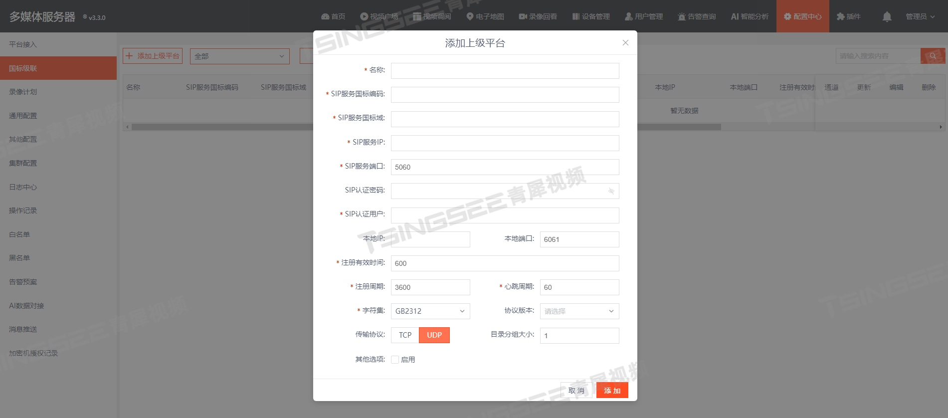 2)随后将EasyCVR级联到上级平台;