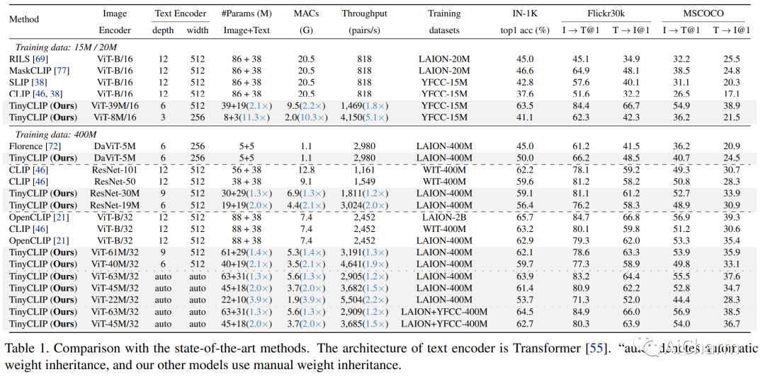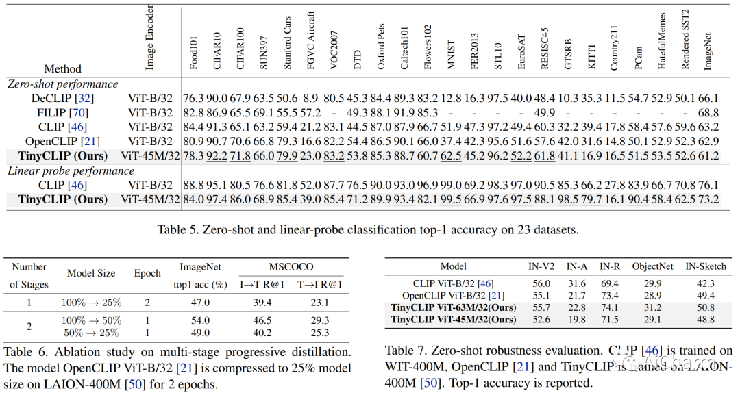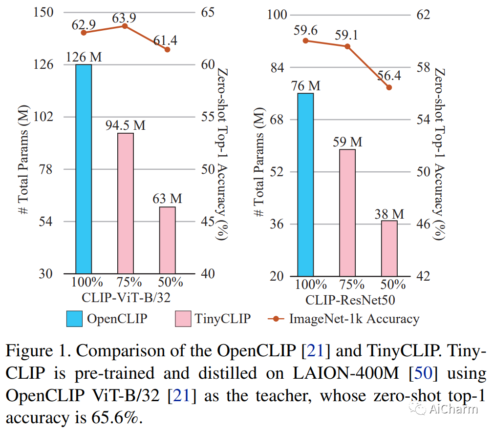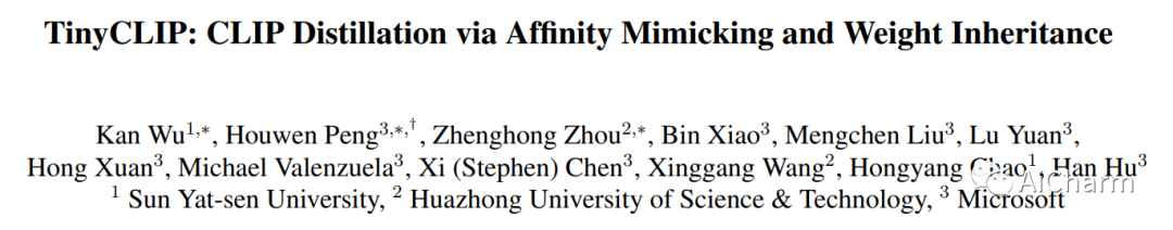 标题:TinyCLIP:通过亲和力模仿和权重继承进行 CLIP 蒸馏