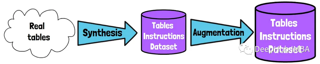 用于表调优的数据集是如何创建的呢?研究人员将他们创建数据集的方法称为“合成-增强”。我们首先注意到,现有标记数据的多样性有限。所以目标是创建一个多样化的足够大的标记数据集,但不需要昂贵的人工标记。从大量真实的表开始,没有说明或标签,其中290万张表来自维基百科,18.8万多张是数据库表。