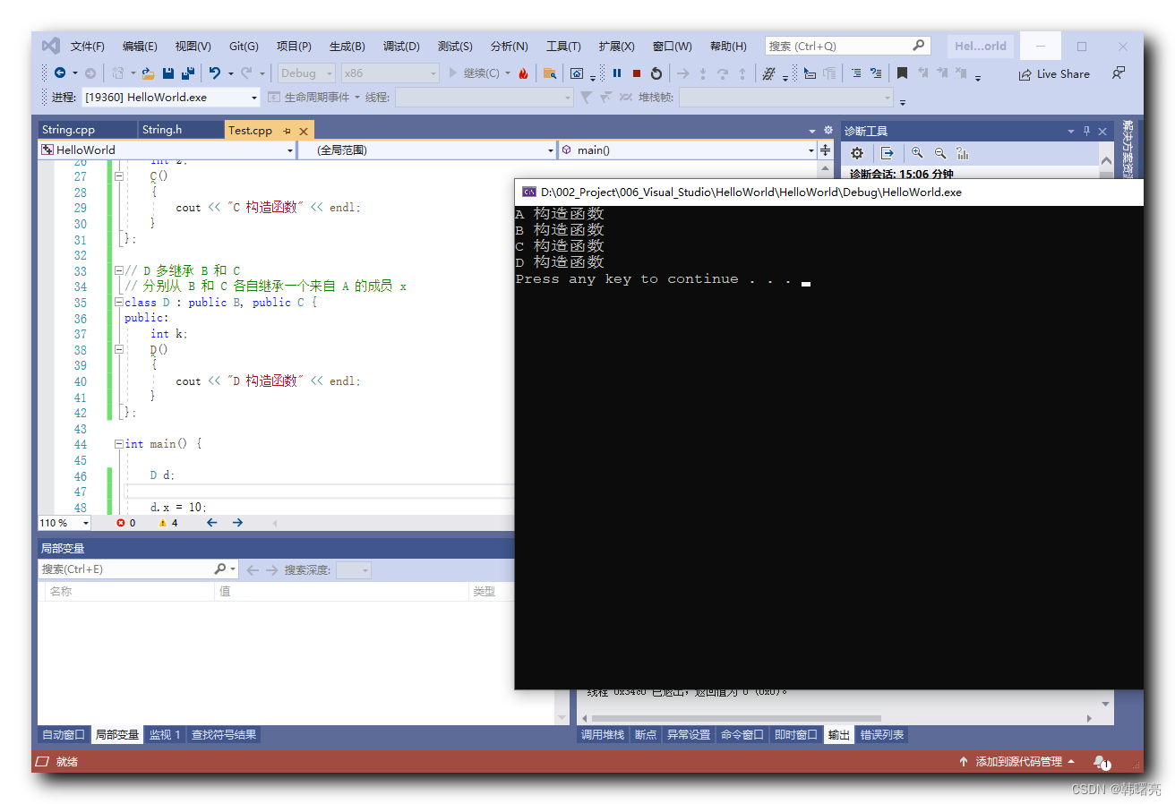最终构建 D 类使 , 发现 A 类的构造函数只调用了一次 , 这样避免了 二义性产生 ;
