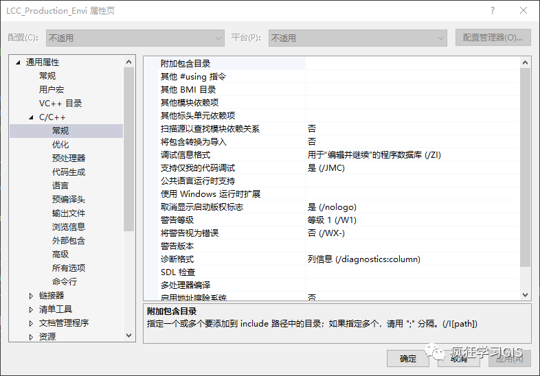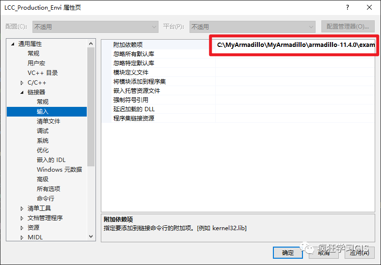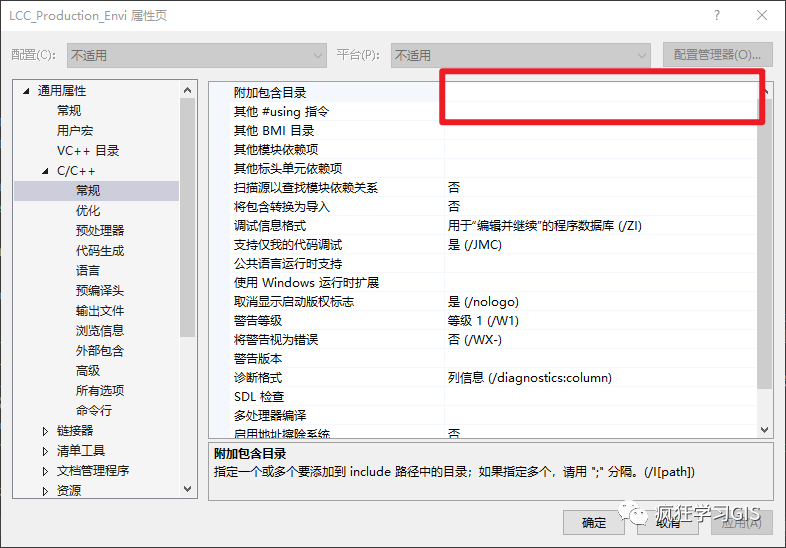 此时我们要做的,就是将原有项目(也就是已经配置好各类第三方库的项目)的附加包含目录、附加库目录与附加依赖项等3个属性,复制到属性表的属性页中。这3个属性的位置具体可以参考文章Visual Studio调用已配置好的C++库的方法。