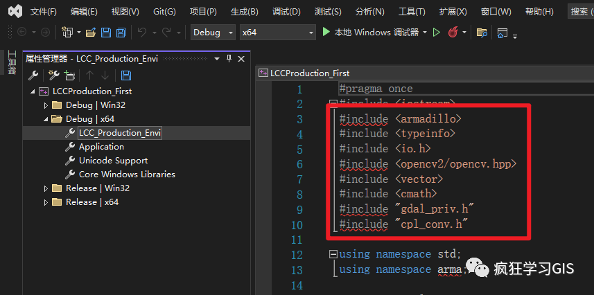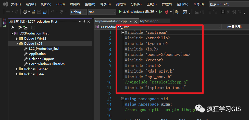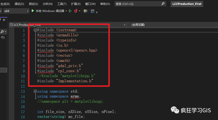 随后,我们新建了一个解决方案,且这一解决方案中的一个新的项目需要同样需要调用前述项目中Armadillo、OpenCV等多个不同的C++第三方库。如下图所示,由于此时我们还没有对新的项目进行第三方库的配置,因此在#include代码中会有报错信息存在。