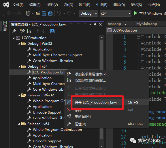 完成对附加包含目录、附加库目录与附加依赖项等3个属性的复制工作后,一定记得需要在属性表名称处右键,将其保存。