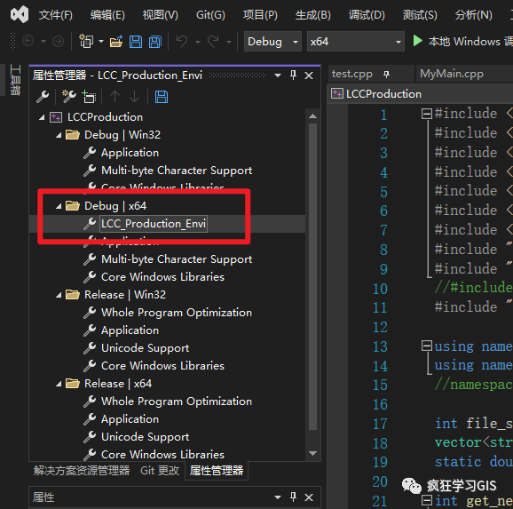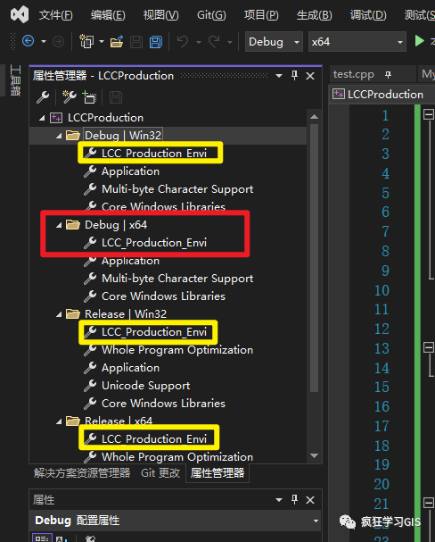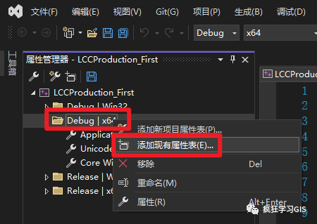 此时,就可以在Debug版本的x64环境对应的一项中,找到我们刚刚创建的属性表,并双击。