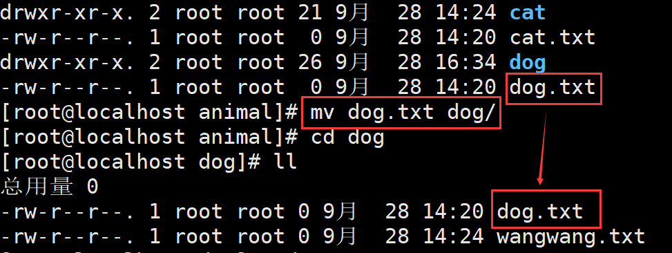 #也可以移动目录。和 rm、cp 不同的是,mv 移动目录不需要加入 "-r" 选项如果移动的目标位置已经存在同名的文件,则同样会提示是否覆盖,因为 mv 命令默认执行的也是 "mv -i" 的别名,例如: