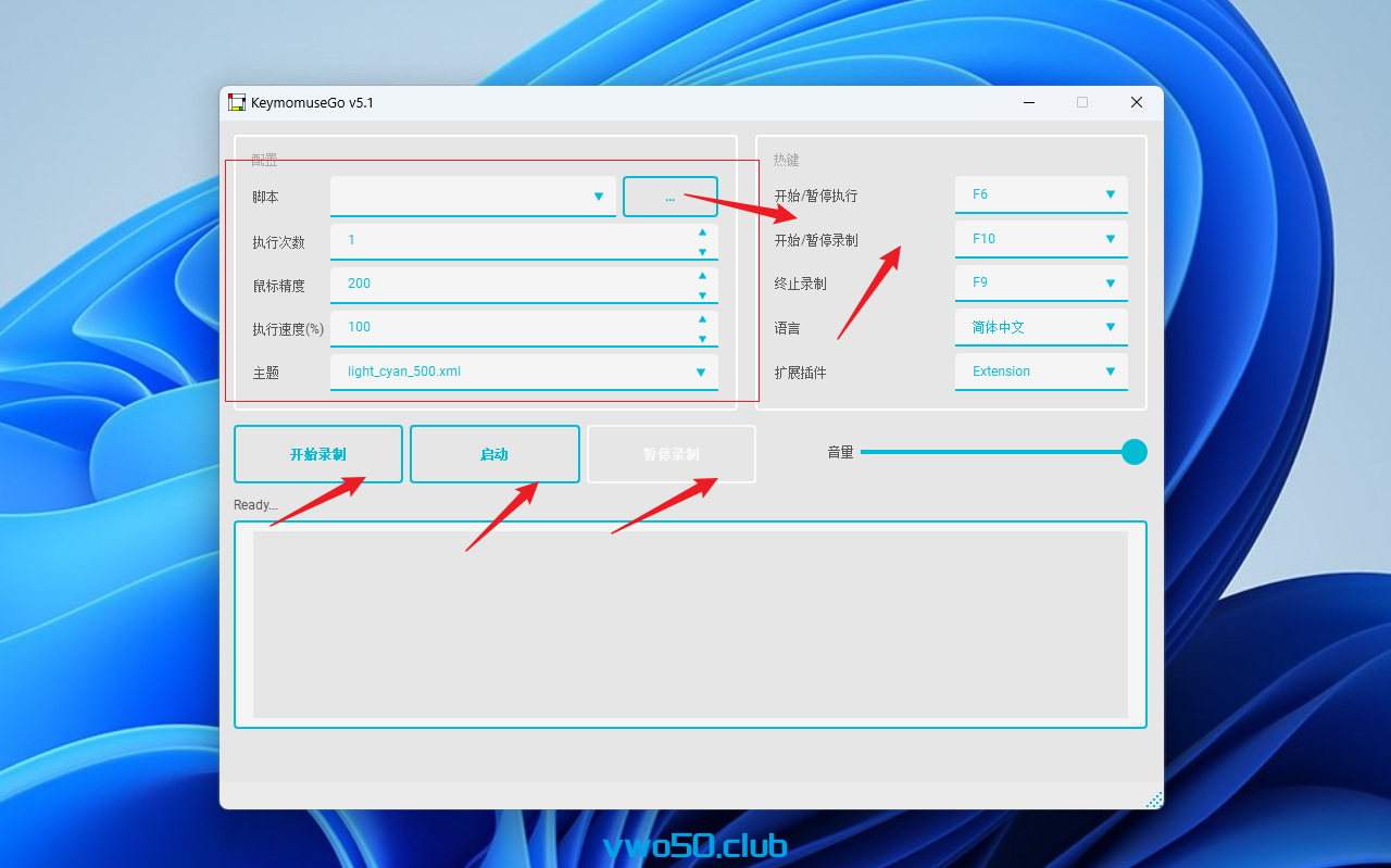 因为接下来要录制鼠标和键盘操作,我们记好录制脚本和执行脚本的快捷键。也就是F10开始录制,F9终止录制,然后F6执行即可。