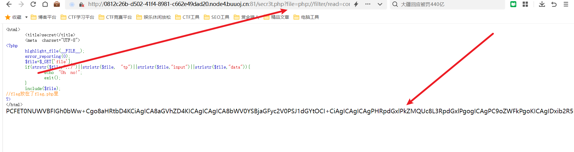 使用参数file访问flag.php文件 回显结果更是表明了flag.php文件内容被编码了