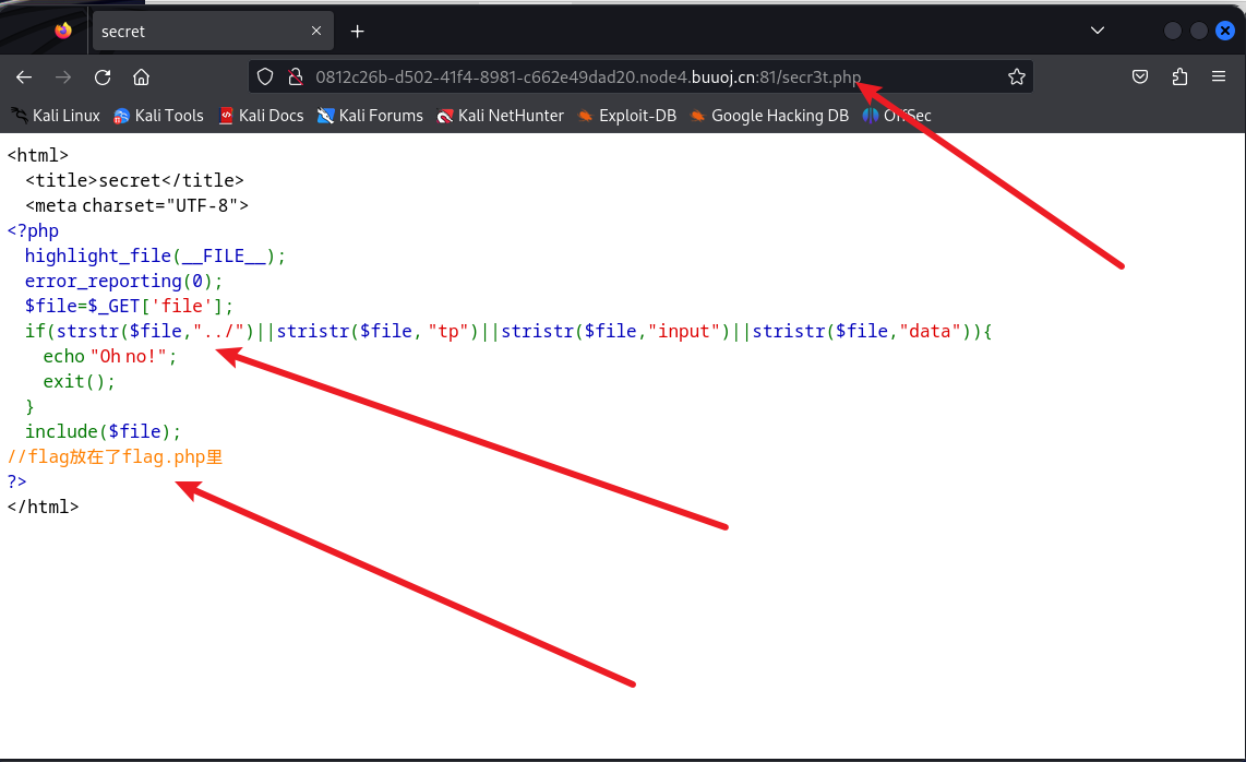 strstr函数查询…/,tp,input,data在file变量里面是否存在,存在则输出0h no! 这对构造PHP伪协议毫无影响