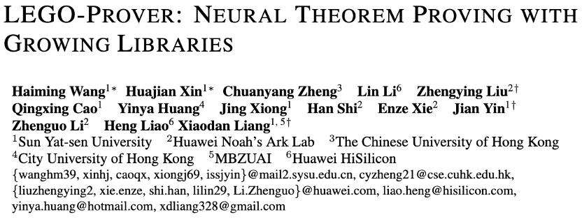 中山大学和华为等机构的研究者提出了 LEGO-Prover,实现了数学定理的生成、整理、储存、检索和复用的全流程闭环。