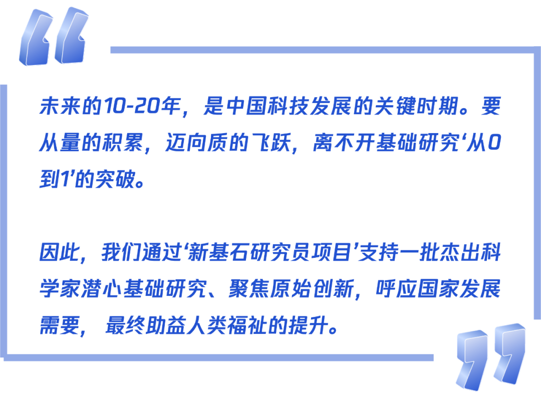 “新基石研究员项目”是一项聚焦原始创新、鼓励自由探索、公益属性的新型基础研究资助项目。