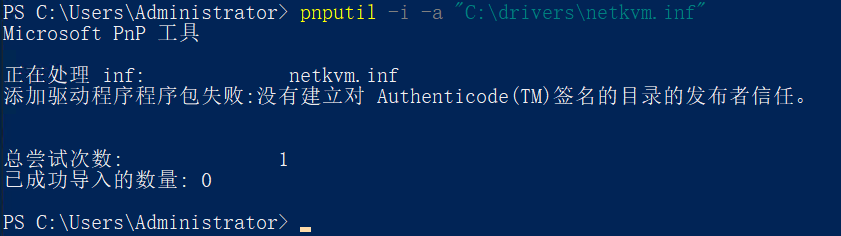 pnputil -i -a netkvm.inf执行安装的时候弹这个交互窗口