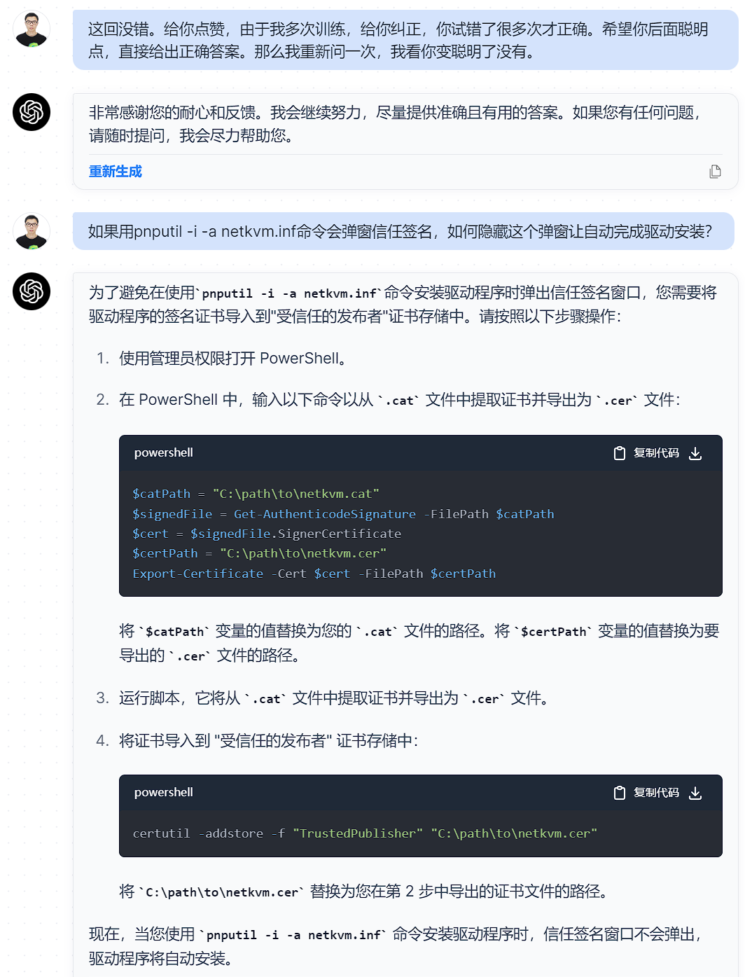 certutil -addstore -f "TrustedPublisher" $certPath#更新netkvm驱动