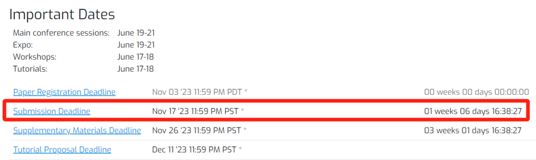 这里要重要说明一下:CVPR 2024 论文提交deadline是:Nov 17 '23 11:59 PM PST *,大家要注意把握时间!