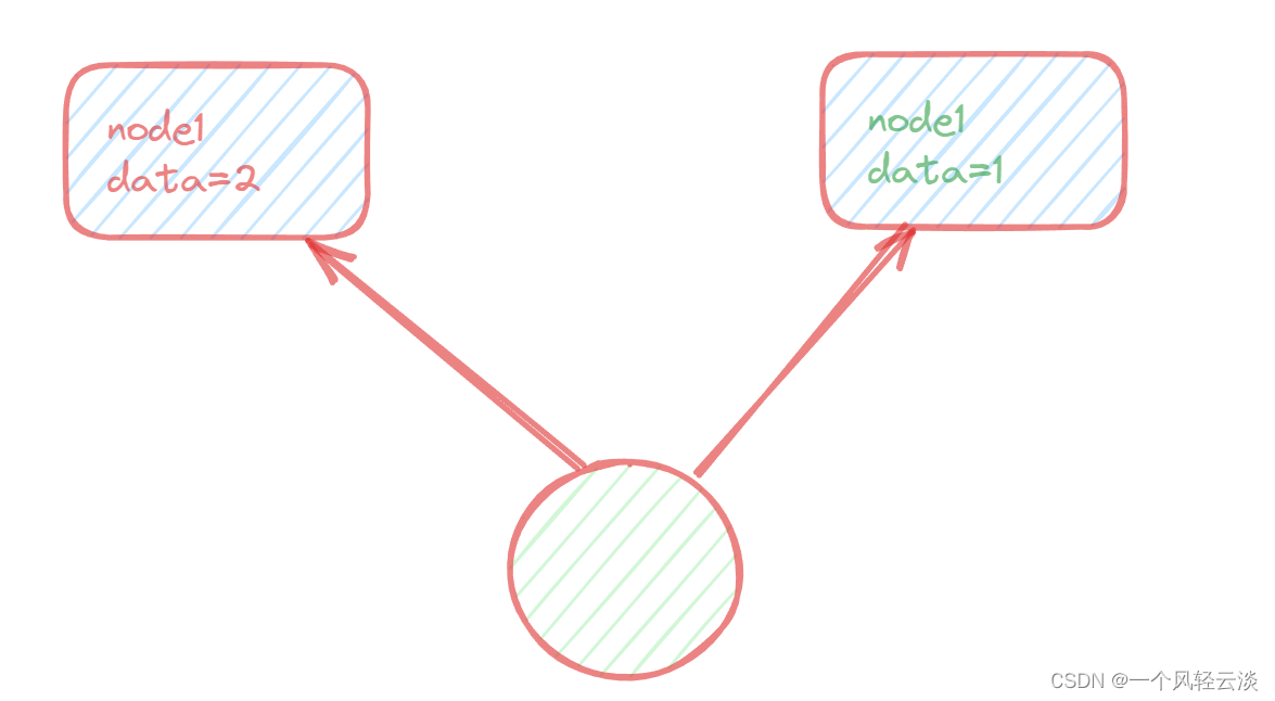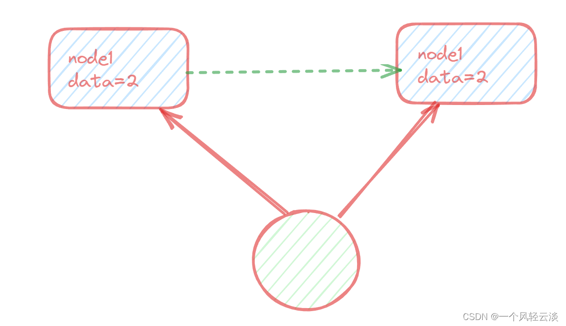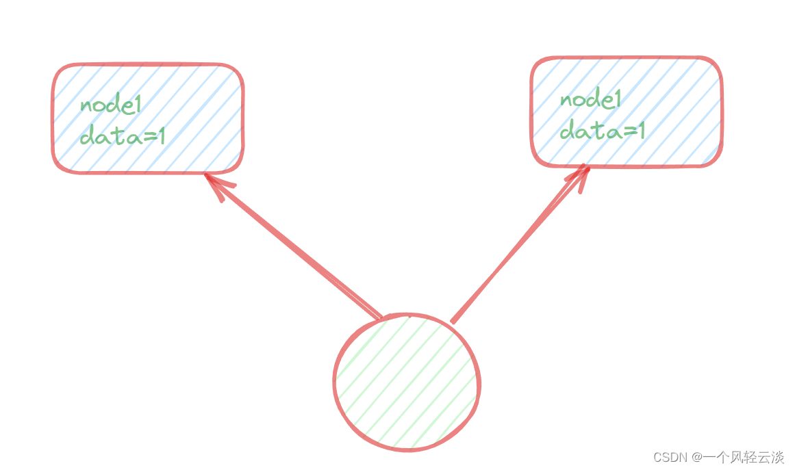 当我们修改其中一个节点的数据时,两者的数据产生了差异: