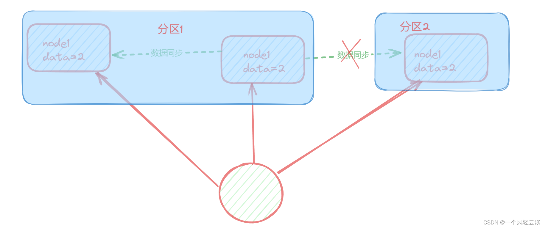 Partition(分区):因为网络故障或其它原因导致分布式系统中的部分节点与其它节点失去连接,形成独立分区。