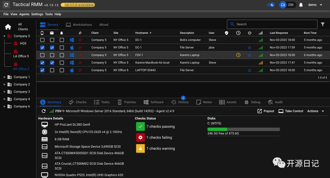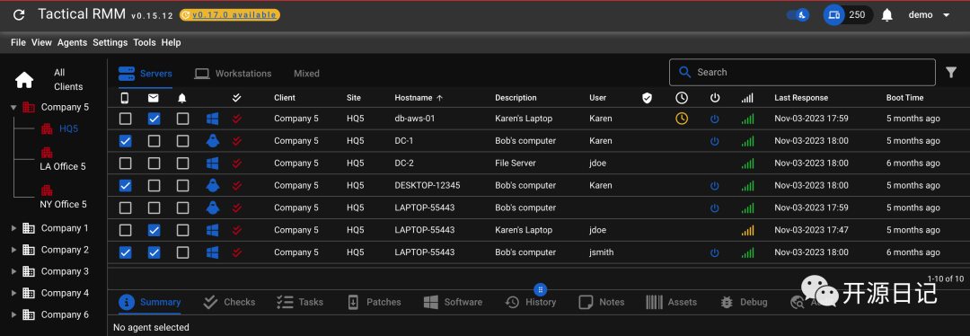 tacticalrmm 是一款基于 Windows 平台的远程管理工具,旨在帮助管理员通过简单的界面远程管理多个计算机。这款软件具有广泛的功能,包括远程关机、重启、锁定屏幕、文件传输、执行命令等,使得管理员可以轻松地管理其网络中的计算机。