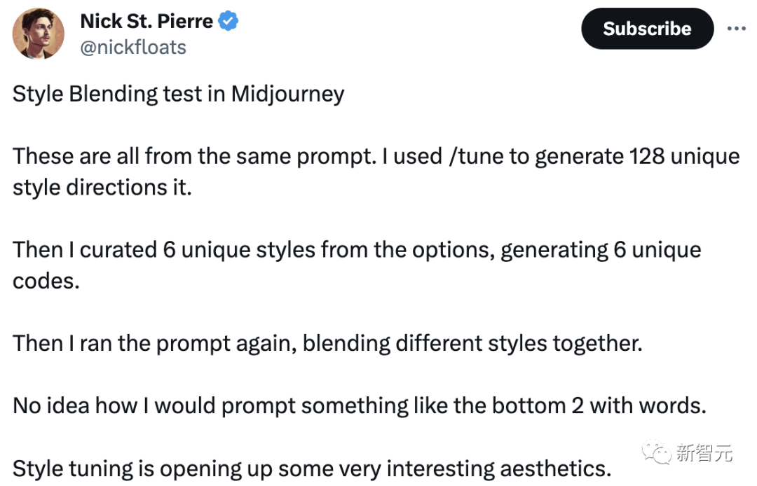 另外,有网友还做了Midjourney的「风格混合测试」,简直带了了非常有趣的美学。