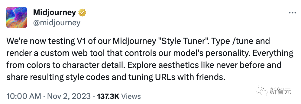 同在今天,史上最强作图神器Midjourney也推出了新功能更新:Style Tuner(风格调谐器)。